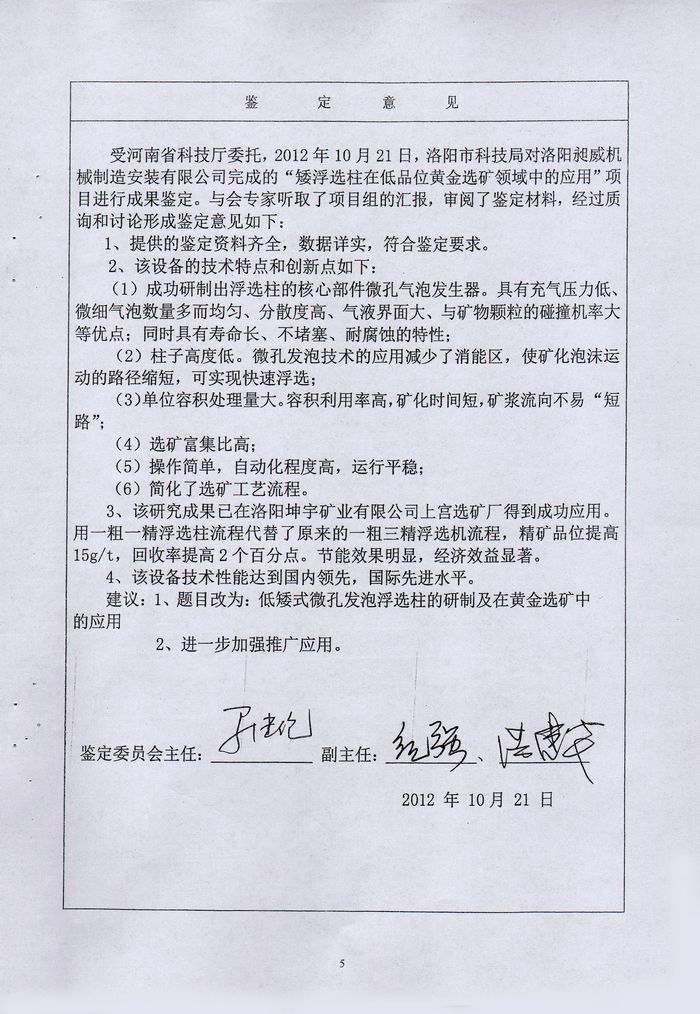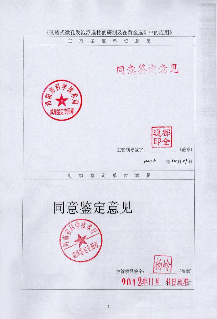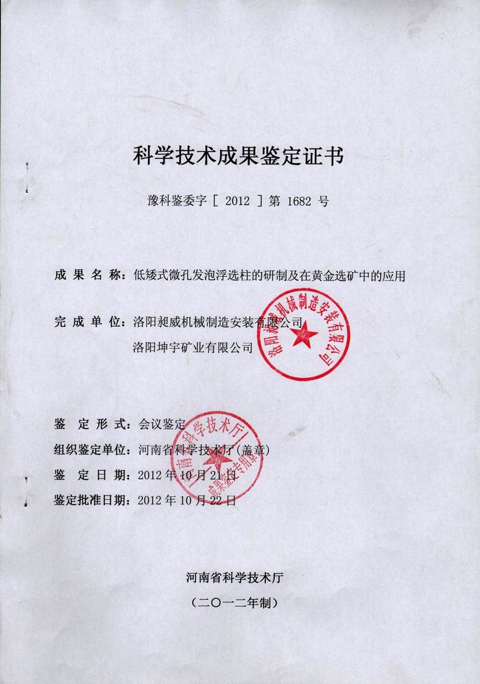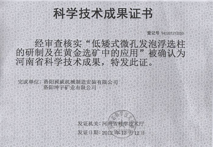 <<返回上一页 洛阳昶威低矮微孔发泡浮选柱科技鉴定成果 发布时间:2019-05-31来源:点击:1602 热烈庆祝洛阳昶威低矮式微孔发泡浮选柱通过河南省科学技术厅科技成果鉴定。后附“科技成果鉴定证书”